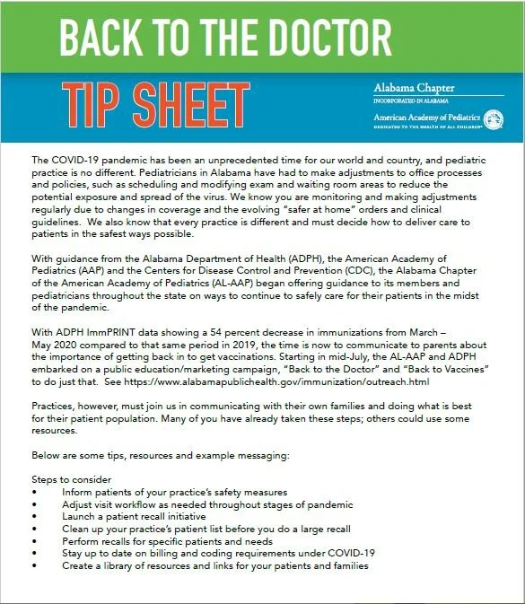 2020 Back to the Doctor/Back to Vaccines Tip Sheet